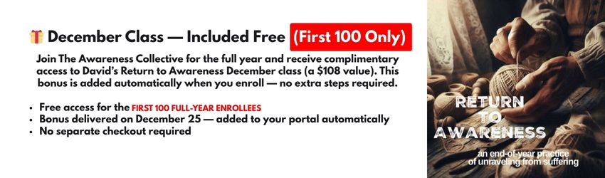 In The Awareness Collective, David invites you not to escape your humanity, but to honor it, to walk with it, breathe with it, and let it be the doorway back into the deeper, undamaged awareness that holds every experience. Here, the spiritual journey is not about becoming something higher; it’s about remembering something truer.